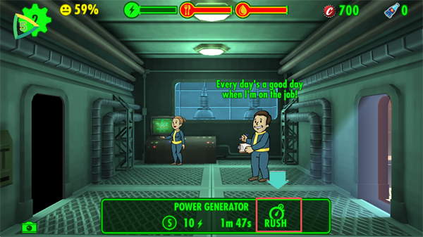 双击任何房间,你可以查看其详细信息,观察生产进度。如果你急需额外的资源,可以启用冲刺模式。点击屏幕上的冲刺按钮,进入冲刺菜单来加速资源的生产。