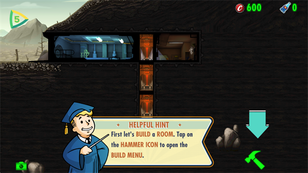 游戏开始时,首先需要建立一个房间。点击屏幕上的锤子图标,打开建造菜单。我们建议首先建造一个发电厂,它能为避难所提供必要的电力。点击“电源”来选择发电厂。
