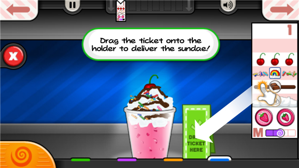 9、最终将冰淇淋给顾客,顾客根据你制作冰淇淋给金币。