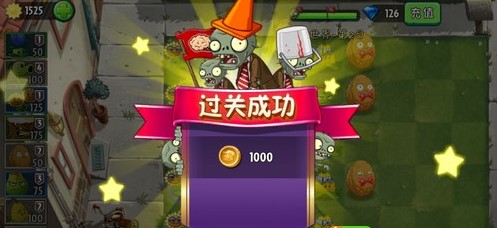 当一大波僵尸来袭的时候,玩家们可以给植物能量豆,这样就能快速消灭僵尸啦。由此摩登世界第一日通关,如图:
