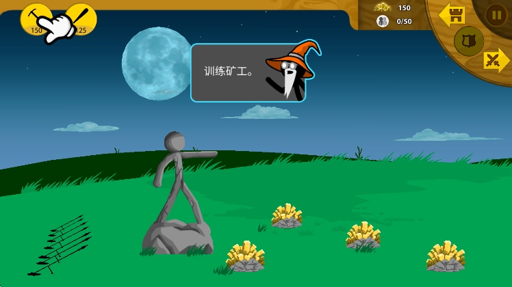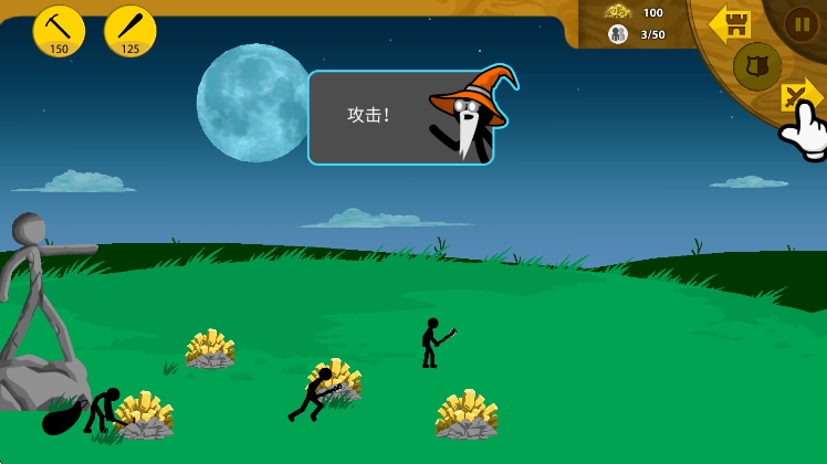 游戏刚开始,别急着造士兵打架,先造几个矿工(点屏幕左上角的“锄头”图标)。矿工越多,挖金矿越快,金币才是你招兵买马的本钱。