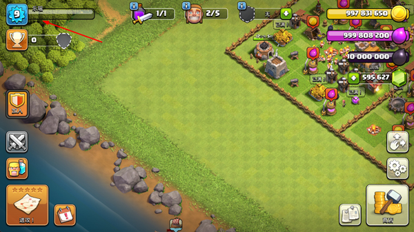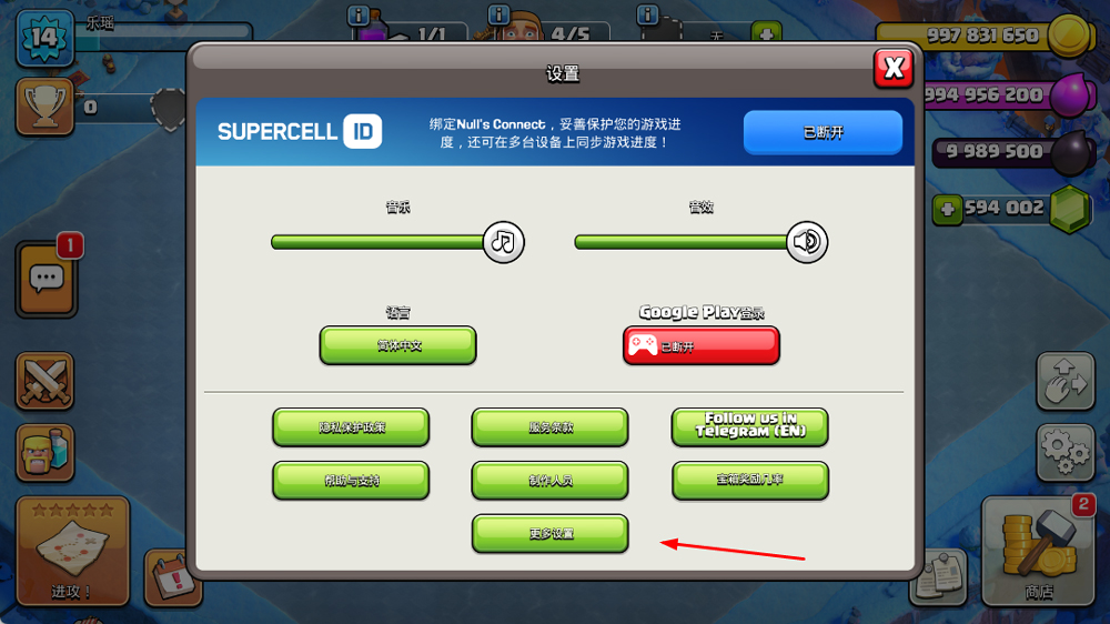 1、打开部落冲突手游,进入游戏后点击左下方设置;
