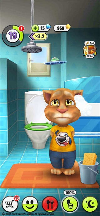 清洁是养成中不可或缺的生活细节。汤姆虽是虚拟角色,却拥有完整的生理反馈逻辑:脏兮兮时会甩耳朵、打喷嚏,洗完澡则神清气爽、毛发蓬松发光。