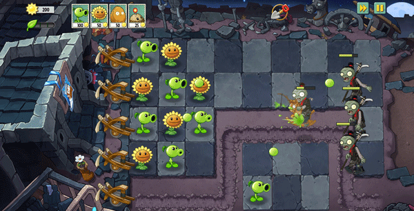 2、超多新颖的僵尸和植物,不仅需要放置植物,你还需要考虑如何在僵尸行动的路线上安排各种障碍。