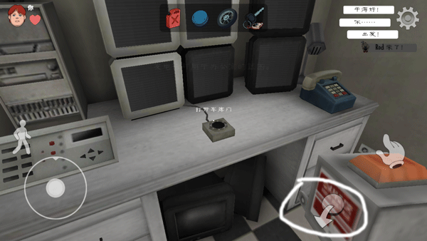 2、场景中隐藏大量交互道具,点击屏幕右侧“手形图标”可拾取当前可操作物品;左下角“人物图标”支持蹲伏动作,便于隐蔽或钻入狭小空间;