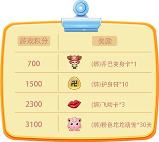 积分成长与奖励对照表: