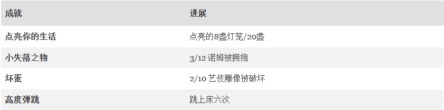 此外,你应该解锁了“高度跳跃”成就。这里有一张表格,详细说明了情况: