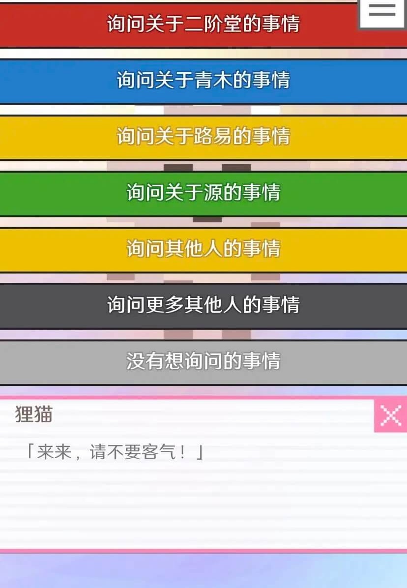 灰色选项「没有想询问的事情」则是通往狸猫线的隐秘入口。