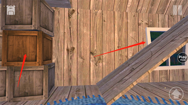 5、将门边沉重木箱拖至指定位置,借其高度攀上房间二层平台;