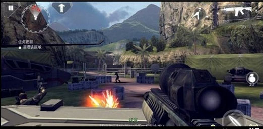 发现火箭筒后立即切换——装甲目标需预判提前量,命中后爆炸特效与震动反馈极具冲击力。