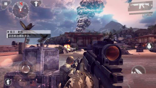 搭乘卡车穿越战区,沿途清理步兵与直升机。注意利用车载机枪的稳定平台,优先打击空中目标。