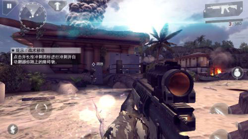 初期为掩体教学关卡:房屋窗口反复刷新靶标,熟悉射击节奏后,队友会破开挡板,此时长按冲刺键即可攀上高台。需注意左右手分工——左手专注走位与姿态切换,右手统筹全部攻击与机动指令。