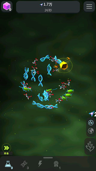 2、指尖轻点即触发微观进化反应,持续产出代表生命复杂度提升的“演化点数”;