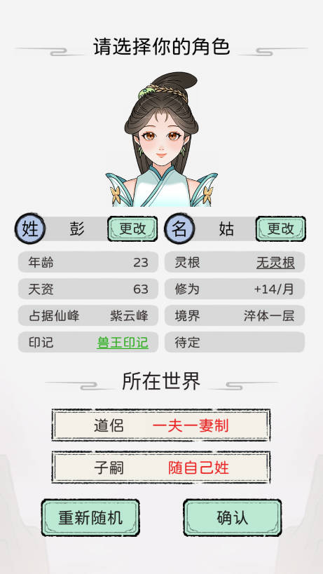 1、开局即刻为家主命名,并设定道侣亲和度、子嗣倾向等核心人设参数,奠定世家初代气运基调。