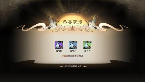 在世界地图冒险:奇遇、打野怪、探索秘境,有机会获得灵丹、灵酒,消耗可提升弟子修为。