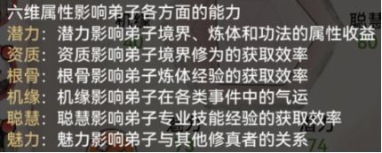 聊到这个就不得不浅聊下弟子的六维属性了: