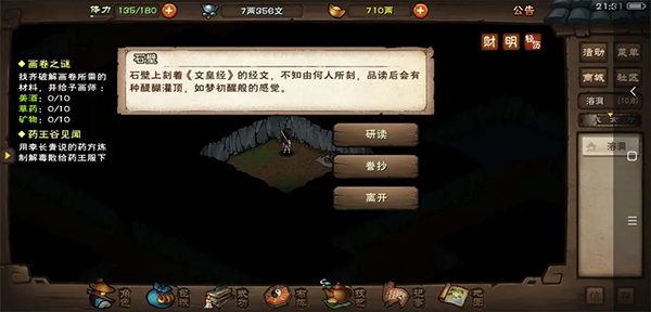 4、经书可在洞中当场研读,亦可花费20份文房四宝誊抄带走——强烈推荐抄录版本,既便于随时温习,又可用于幽州书店“江湖杂书”系列任务第三环的关键交付物。
