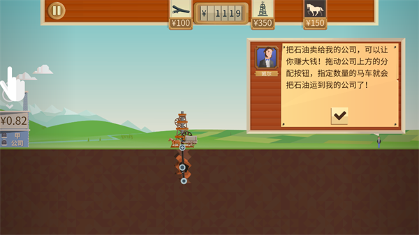 6、当你挖到石油之后,就可以点击马车图标,雇佣马车将使用运输到左公司卖掉了