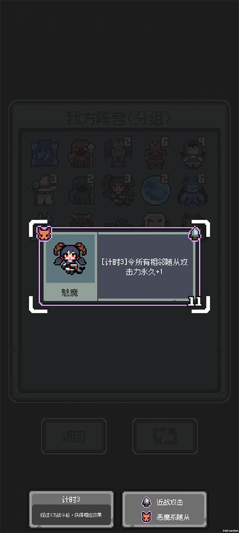 魔王终局手机版最新版是一款融合自走棋玩法的策略休闲手游。在这里,你将彻底摆脱传统冒险者身份,化身掌控全局的终极魔王!面对源源不断为夺宝而来的各路冒险者,你需要精心招募强力随从、灵活组建特色阵营,并运用战术智慧在限定回合内将所有入侵者彻底击溃、驱逐出境!