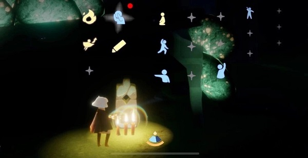 石碑旁的先祖商店,用蜡烛兑换动作、用爱心购置装扮、用乐器合奏旋律;侧方换装室,则让你从裤装、面具、发型到斗篷、饰品,细细雕琢属于自己的云中形象。