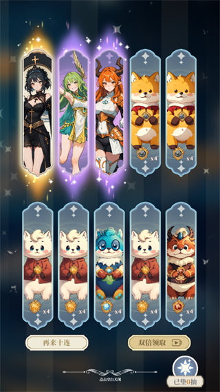 2、选择【极速翻牌】模式,一次性揭晓十张卡面,节奏紧凑、反馈即时,大幅提升抽卡沉浸感。
