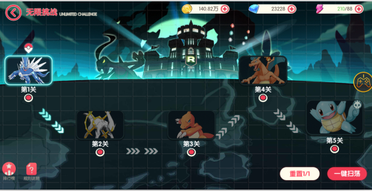 2、每日享有1次关卡重置机会,重置时间统一为凌晨5点(服务器时间)
