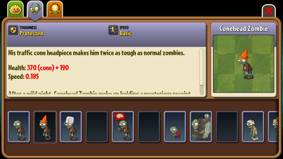 2、路障僵尸 头顶加固路障,抗打击能力显著提升,需搭配持续输出或范围攻击应对。