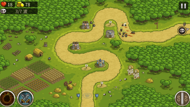 3、第三波解锁“援军召唤”技能(冷却10秒/持续10秒),每次召唤两名近战士兵。建议技能一就绪立即施放,并将援军精准部署于兵营集群前方,形成双重肉盾防线,大幅提升前排容错率。