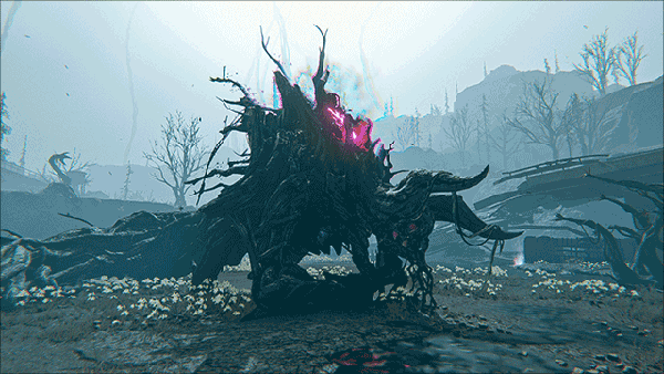 寄生于巨楔BL155E裂隙的活体生态灾害,空间原型为消失的萨莫维尔镇——但所有建筑表面覆盖着脉动的生物荧光菌毯。它缓慢移动时,地面会析出结晶化根须,触碰即引发局部重力紊乱;背部人形轮廓实为被同化的前镇长意识残响,其低语会干扰玩家方向感知。