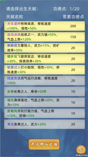 选择初始天赋,每个天赋的含义不同,在这里玩家可以选择5个天赋,分别出自于不同的效果。