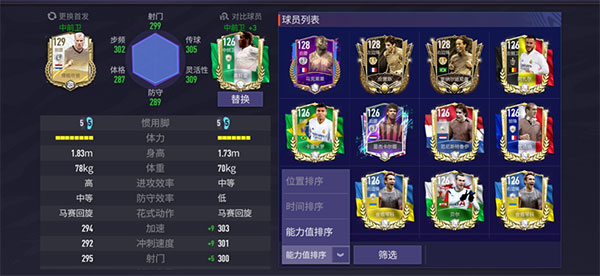 全新对比界面采用三维雷达图呈现:基础属性、战术适配度、位置泛用性三大维度直观比对。替换操作简化为单次点击,让阵容调整如同调兵遣将般从容不迫。