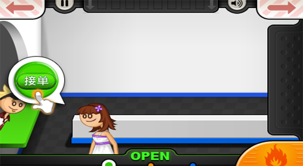 1、进入到游戏当中第一天开业见到客人就接单。