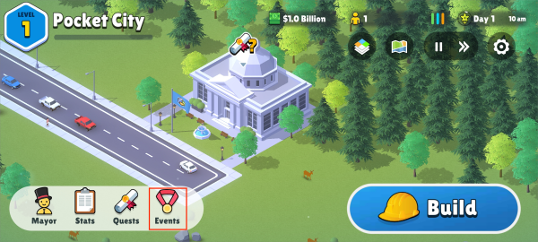 8、点击【Events】可触发随机事件,如节日庆典、街头快闪或极端天气预警;
