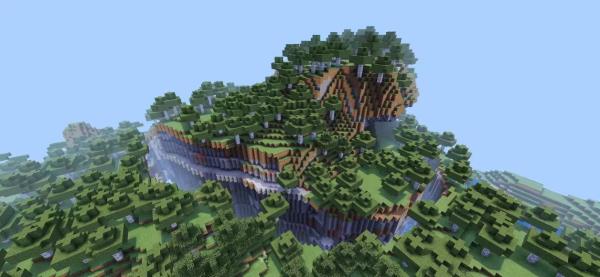 视觉系峡谷典范:阶梯状岩层层层递进,阳光斜射时投下戏剧性光影。坐标(1724, 99, -402)定位精准,周边同步生成小型村庄,兼顾美学体验与生存发展双需求。