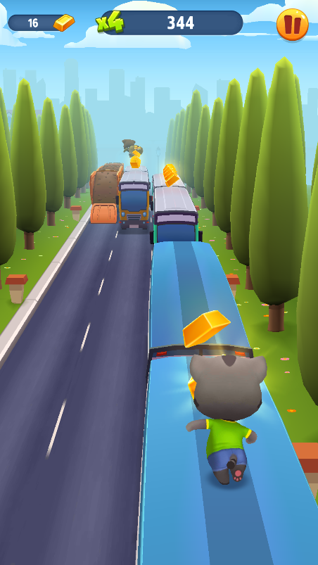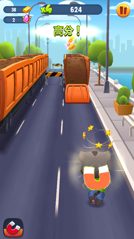 本作采用直观易上手的竖屏操作逻辑:角色自动向前奔跑,玩家只需通过左右滑动控制方向、上滑跳跃、下滑翻滚,即可灵活应对路面上突然升起的栏杆、横置的货箱、移动的车辆等多样化障碍。金币散落于主道两侧及空中平台,合理规划路线能大幅提升收集效率。