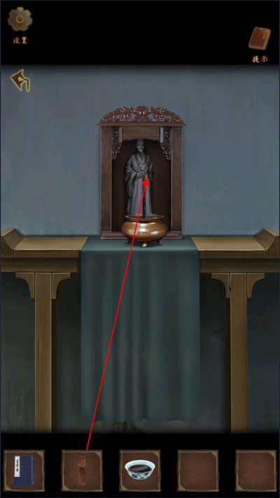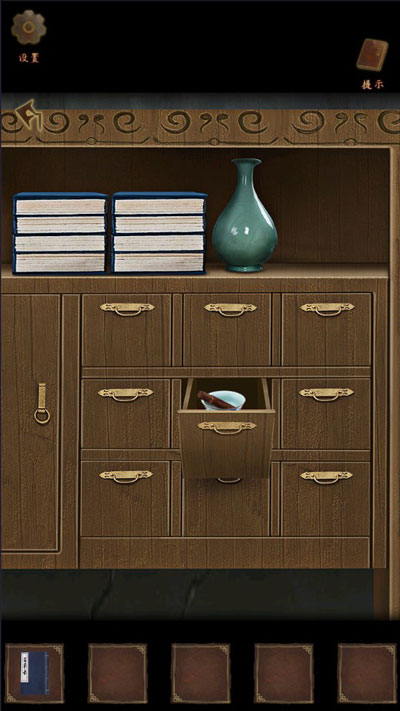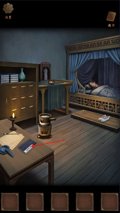 1、(剧情引导)点击床头青釉花瓶,向右轻推移开,露出暗格,拾取【铜钥匙】