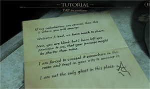 3、鬼气森森的信件,最后给了大家一句大实话,(我不是这所房子里唯一的鬼魂。)真是太吓人了。读完信件会得到一个奇怪但是很重要的东西,眼镜。