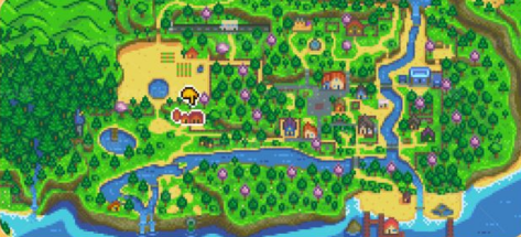 无论选择哪类农场地图,只需一路向南直行,穿过小桥与林间小径,便能抵达这座红顶白墙的标志性牧场;其位置设计兼顾功能性与探索引导性。