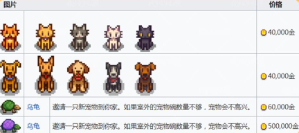 当初始宠物好感度满值,或进入第二年仍未拥有伙伴时,即可购买《宠物饲养许可证》开启新缘分;领养前须委托木匠罗宾搭建专属宠物碗;若需结束一段陪伴,可向神秘商人科罗布斯支付2万金币购得蝴蝶粉,温柔告别旧友。