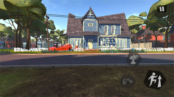 在游戏中你可以通过翻窗逃跑、利用割草机制造噪音来迷惑邻居,甚至可以捡起物品投掷到邻居身上,从而减慢他的速度,如果不小心被邻居抓住,游戏会从头开始,给你一个重新尝试的机会。