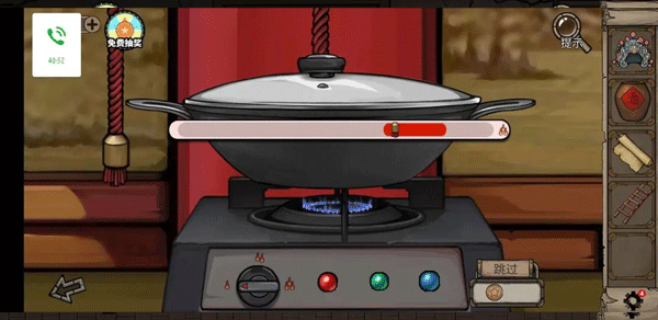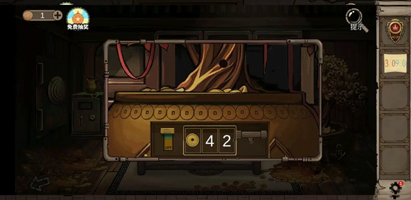 拉动把手收集三枚古铜钱