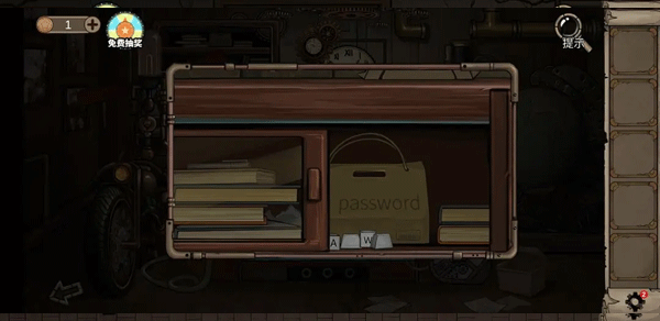 按从左至右顺序输入WUMA开启左抽屉,获得首枚齿轮零件