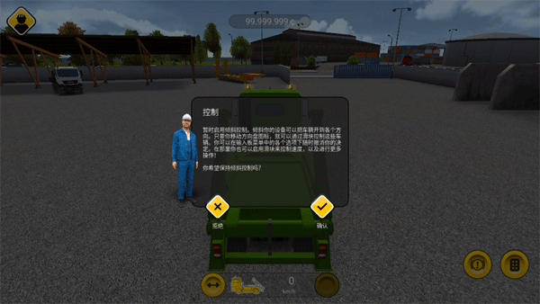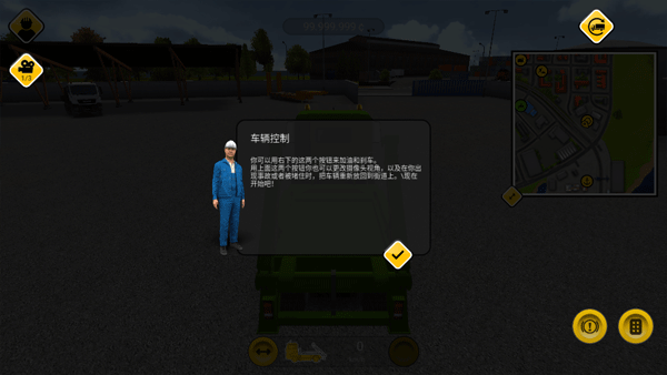 右下角双按钮分别对应加速与驻车制动;上方视角切换键支持自由旋转镜头、锁定作业面或切换第三人称跟随模式;若车辆陷入泥沼或碰撞障碍,可一键重置至最近安全路段,避免反复返工。