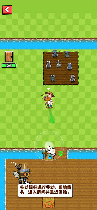 4、操控采用虚拟摇杆设计,拖动屏幕中央隐形轮盘即可移动农夫角色,前往指定地块开垦、耕作,持续产出阳光资源。