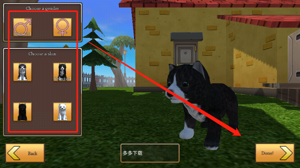 2、点击“play”进入角色创建页,从四款基础犬种中挑选心仪伙伴,并自定义性别、毛色与项圈配饰。