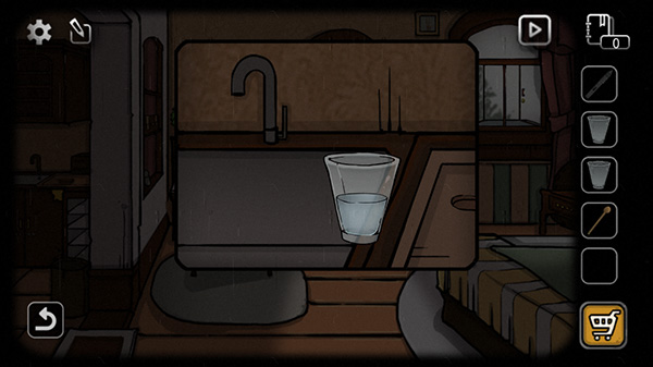 11、用此钥匙开启水池上方橱柜,取得三只空玻璃杯与一台老式磁带录音机;