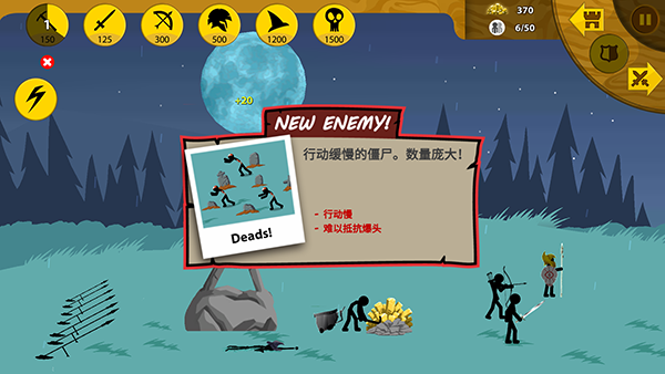 火柴人战争遗产无限钻石无限皮肤,在这款游戏中,你可以见识到强大的僵尸BOSS,你需要运用战术来控制火柴人团队去消灭它,还有随时补充物资,难度较大,快来挑战吧!