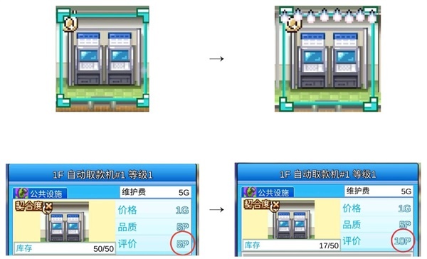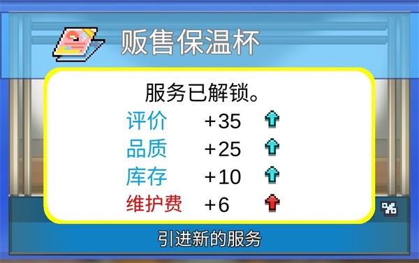 升级获得的点数可分配至品质或库存。除服务台、卫生间等特殊建筑外,建议优先扩充库存——尤其对已锁定的高产店铺,避免“售罄”导致当月停摆;若店铺矩阵尚不完善,则库存权重应高于品质