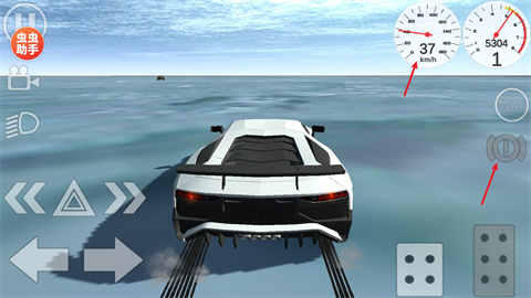3、进入到驾驶场景当中了,包括录像、大灯、转向灯、启动等按键,我们可以通过左下角的左右控制车辆移动的方向,通过右下角【刹车】后退和【油门】前进按钮来控制车辆的速度。