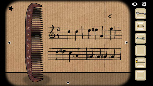 2、拼合音符图谱,在梳齿上依序拨动:BBDDBB#GABDBA#GA,解锁匣中钥匙。